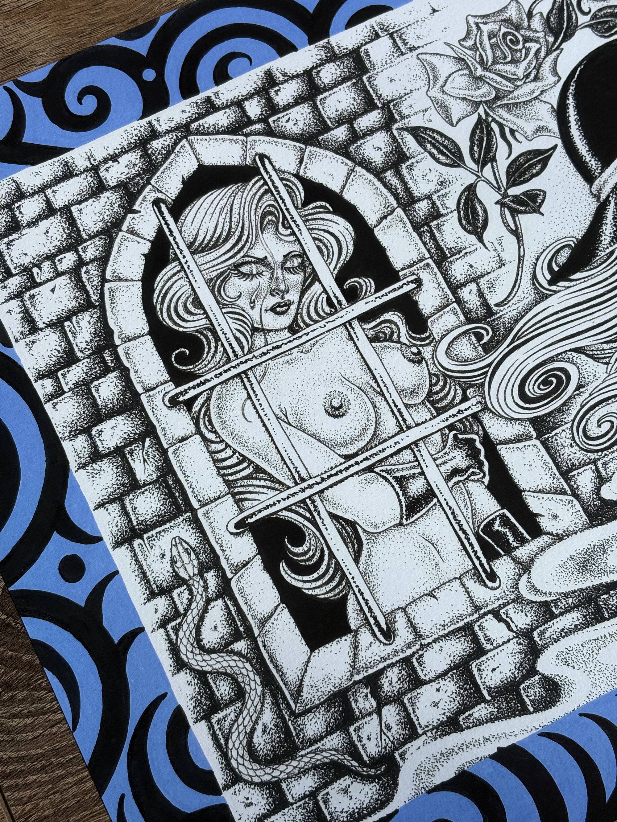 Original artwork painted on Arches® hot pressed watercolor paper (300 gsm, 100% cotton). Mixed media technique: acrylics and micron pen. Each piece was sealed by hand with Titan Yate marine varnish, giving it a satin finish and long-lasting protection.